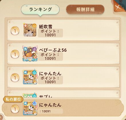 各種ポイント ぐみ15 たま50 はな220 くま960 左から順番に達成すると5ポイント上昇