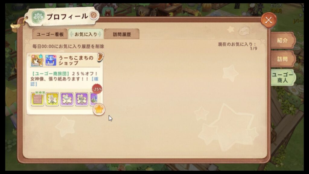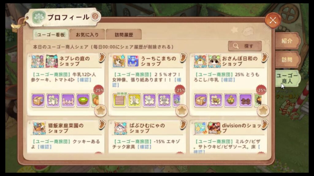 右側に表示されるタブのうち、紹介訪問 → ユーゴー商人を選択