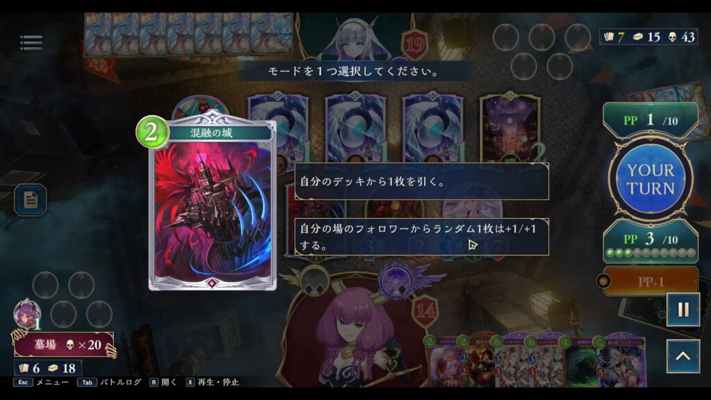 混沌の城を盤面に出しておいてランダムバフで20点を狙います