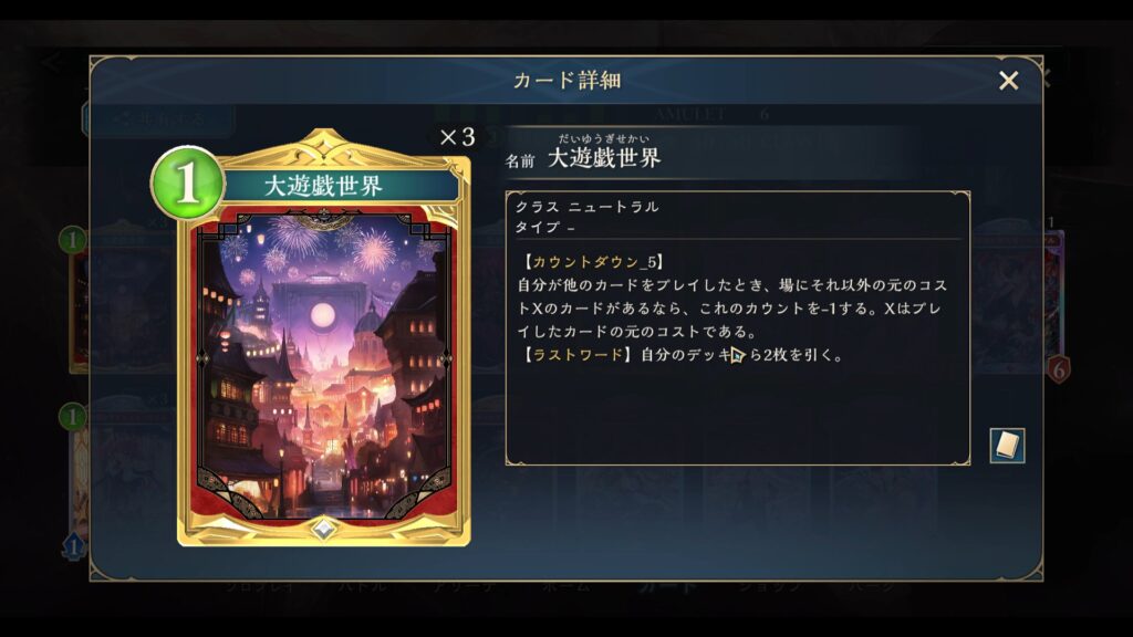 ドローとバフを兼ねるサポートアミュレット。中盤以降のリソース補助に重要です。