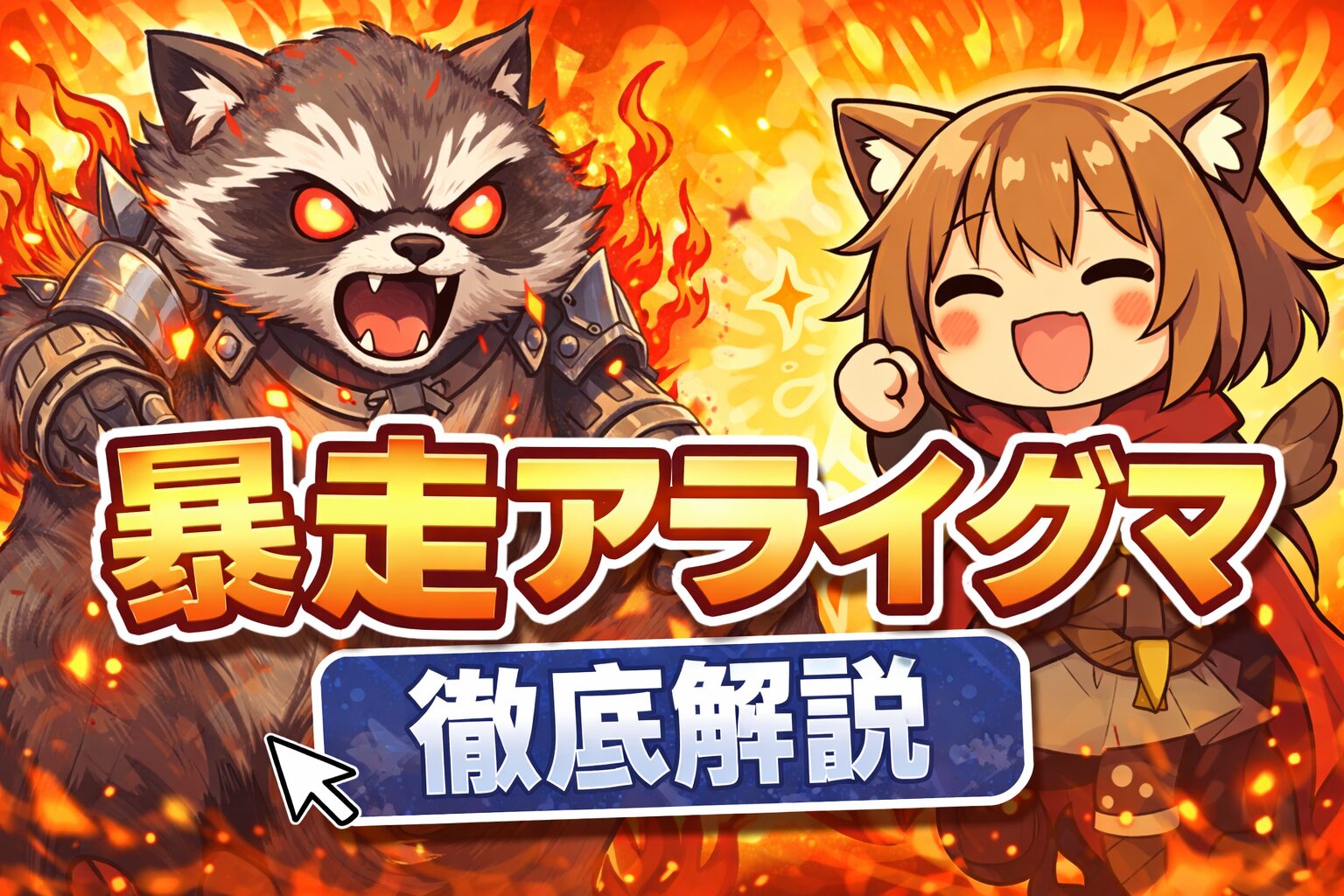 暴走アライグマは騎士団コンテンツの一つで、仲間と協力して挑戦するイベントとなっています。参加方法や時間、流れをしっかり理解しておくことで効率よく周回できるので、これから始める人や復習したい人はぜひ参考にしてください。