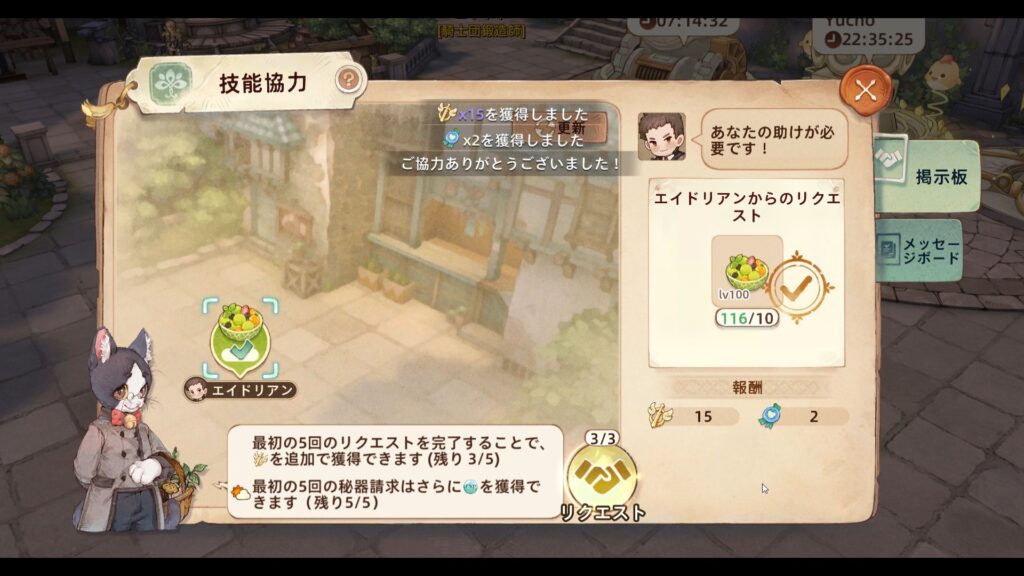 技能アイテムを渡して騎士団栄誉を獲得。