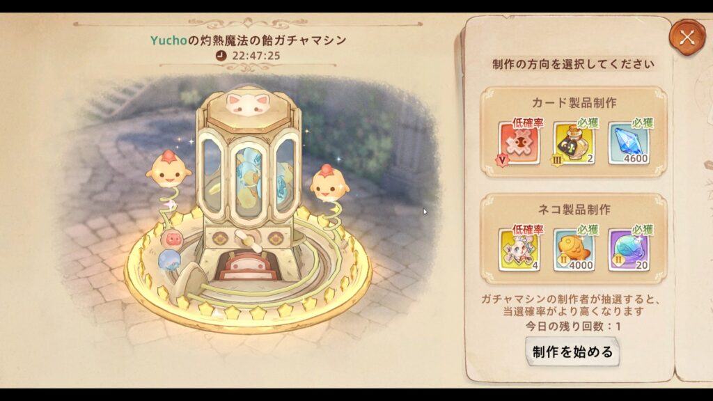 アメガチャは基本的に「カード製作」を優先がおすすめです。