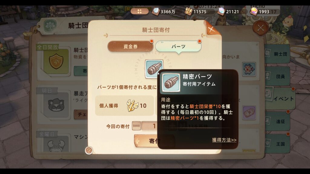 騎士団は毎日やることが多いですが、基本は