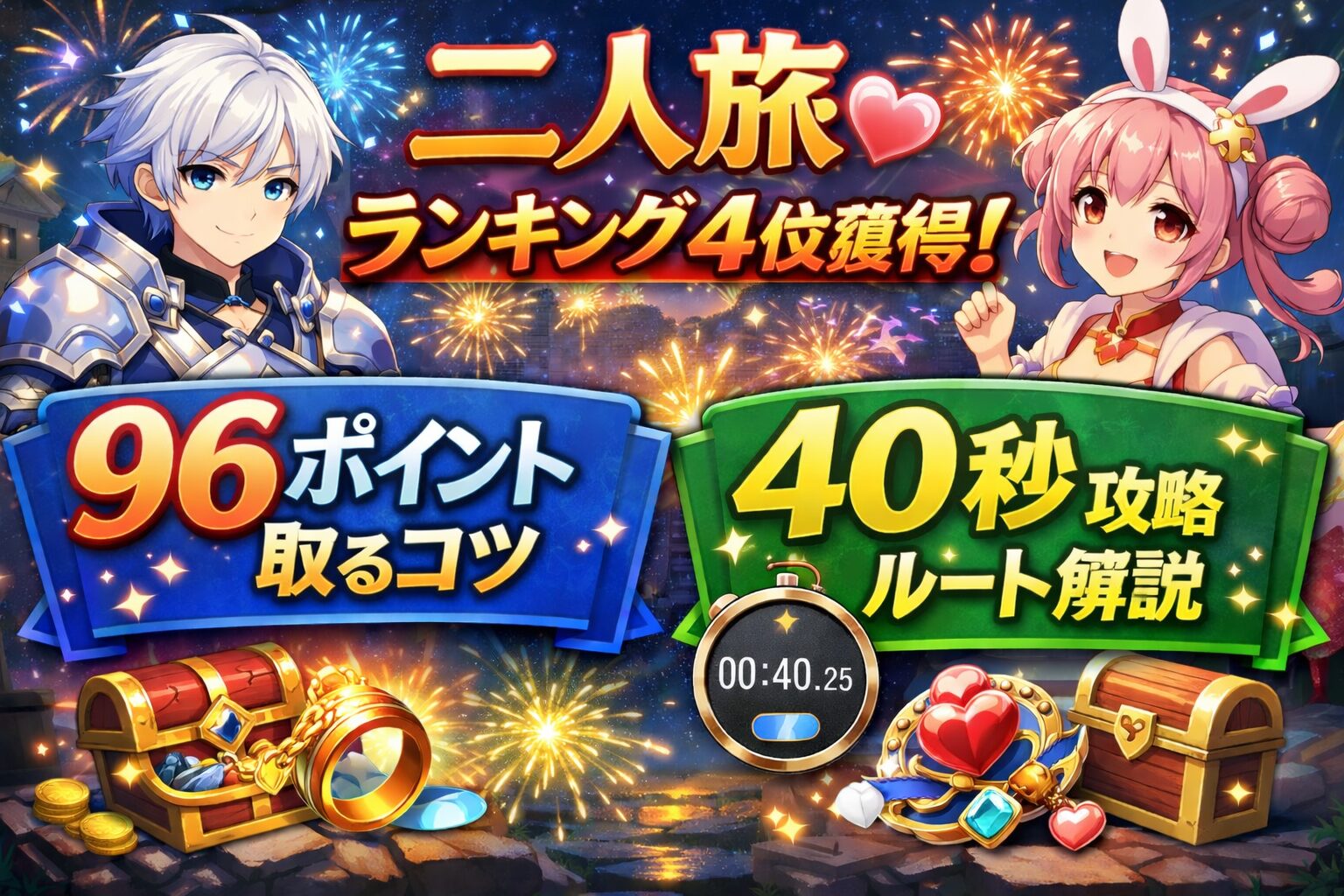 今回はゲーム内コンテンツ「二人旅」でランキング4位を取ることができたので、仕組みと攻略のポイントをまとめます。