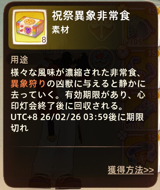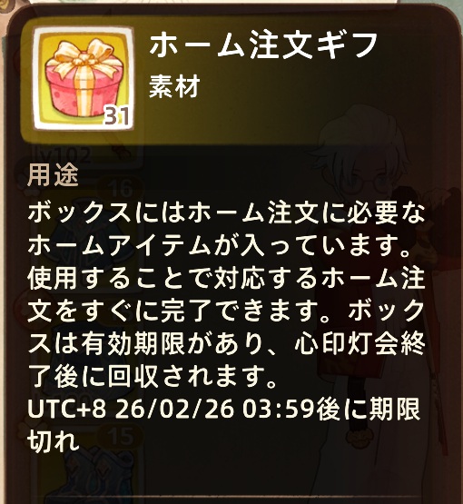 イベント報酬で手に入ったアイテムの期限が