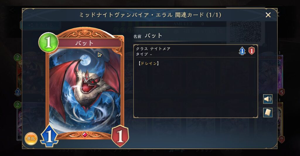特に相性が良いのが「バット(小蝙蝠)を生成するカード」です。 盤面にフォロワーを並べて壁を作りつつ、自身の体力も回復していく。これが回復ナイトメアの基本ムーブになります。