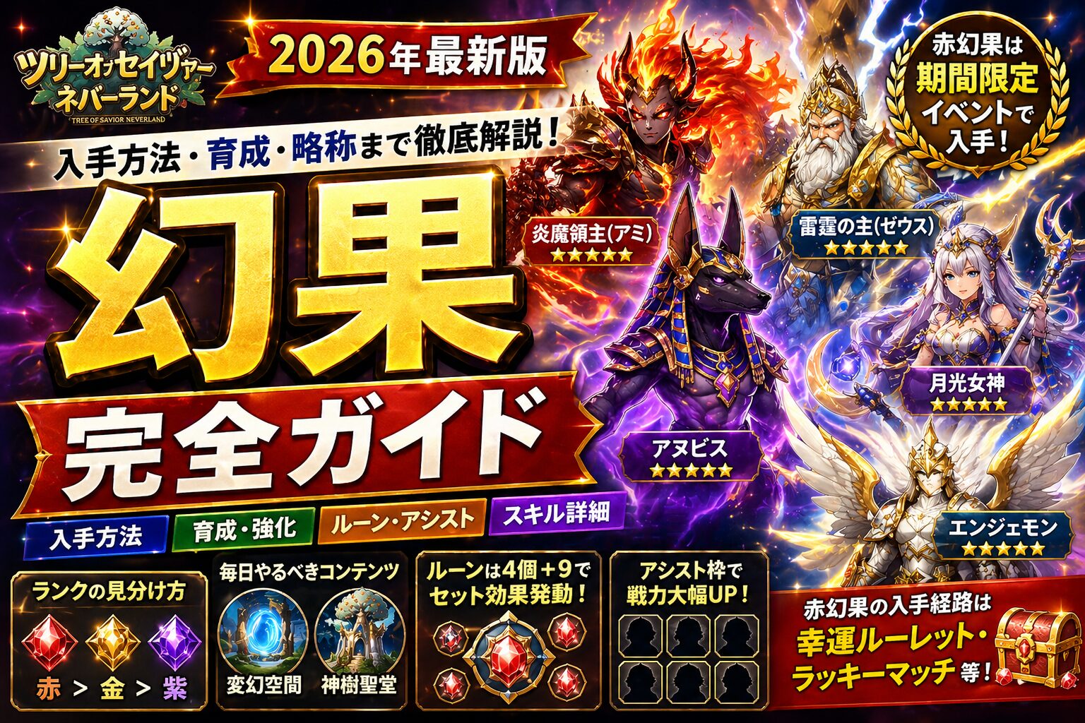 ルーンの入手・強化・セット効果の詳細は 幻果ルーン徹底ガイド で解説しています。